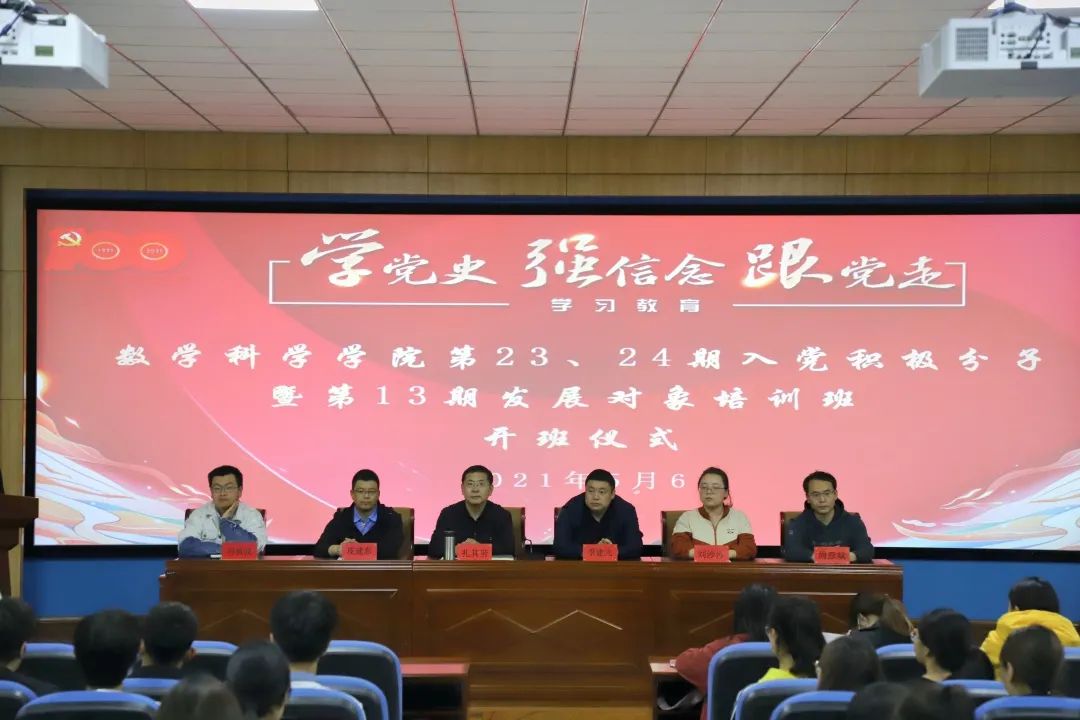 为促进BEAT365官网发展对象、入党积极分子对党的进一步学习,提高其自身思想水平和政治素养。2021年5月6日,BEAT365英国官网于学生事务中心举行第23、24期入党积极分子暨第13期发展对象培训班开班仪式。本次会议由学院团总支书记皮建东老师主持,学院党委书记扎其劳老师,学院党委副书记、副院长季建光老师,学院学生思想政治工作辅导员刘勇波、刘沙沙老师,信息与计算科学学生党支部书记周彦斌老师及全体发展对象、入党积极分子参加此次会议。