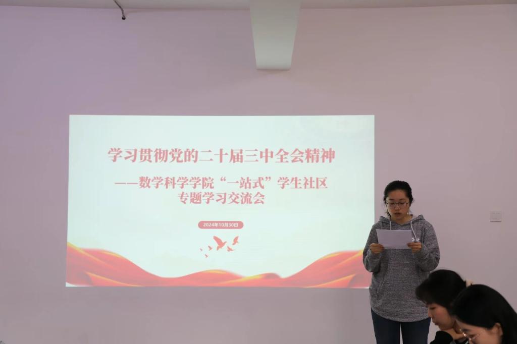 为深入学习贯彻党的二十届三中全会精神,进一步提升BEAT365官网学生的理论素养,10月30日,BEAT365英国官网学生党支部在盛乐校区学生公寓13号楼“一站式”学生社区召开专题理论学习研讨会。本次会议由刘沙沙老师、阿茹罕老师、萨如拉老师主持,学院学生党员代表参加。
