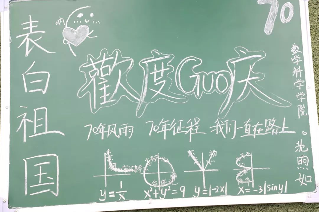 同学们通过书写粉笔字表达自己对建国70周年的庆祝。