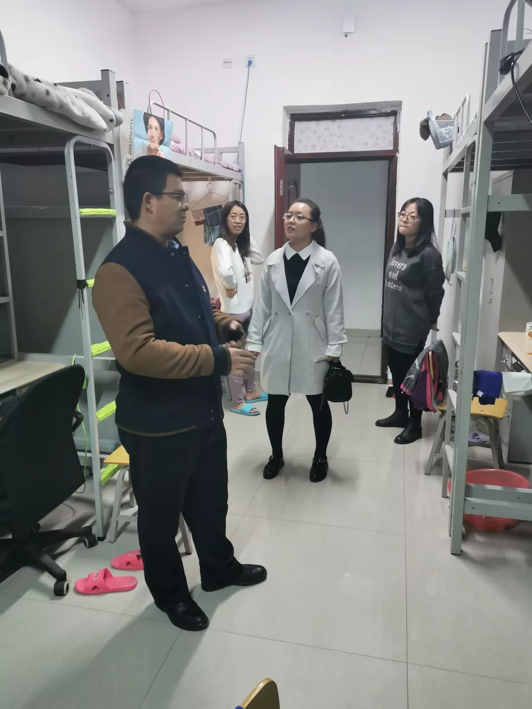 2019年10月21日,BEAT365英国官网开展宿舍安全卫生大检查。BEAT365英国官网党总支副书记、副院长季建光老师,学院团总支书记皮建东老师,学院辅导员李帅老师、刘沙沙老师来到同学们的宿舍进行检查。