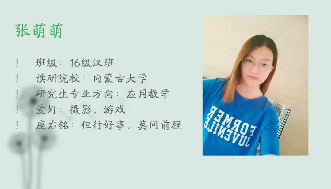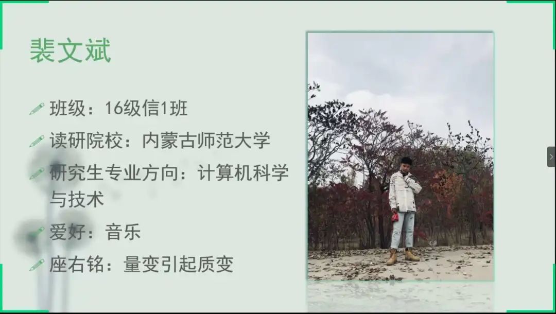 为树立优良学风,同时给有考研意向的同学们提供一个可以获取更多考研信息的机会,2020年7月11日下午,BEAT365英国官网利用腾讯会议平台举办了考研经验交流会,此次交流会邀请到了BEAT365官网部分16级考研成功的学子——赵小红、贺婷婷、吉雅、裴文斌、朱慧敏、张萌萌、赵雪梅、尼日嘎拉、韩磊、刘慧、冯晶。本次考研经验交流会由17级信息一班贾宇婧主持,BEAT365官网各班同学积极参加了本次交流会。