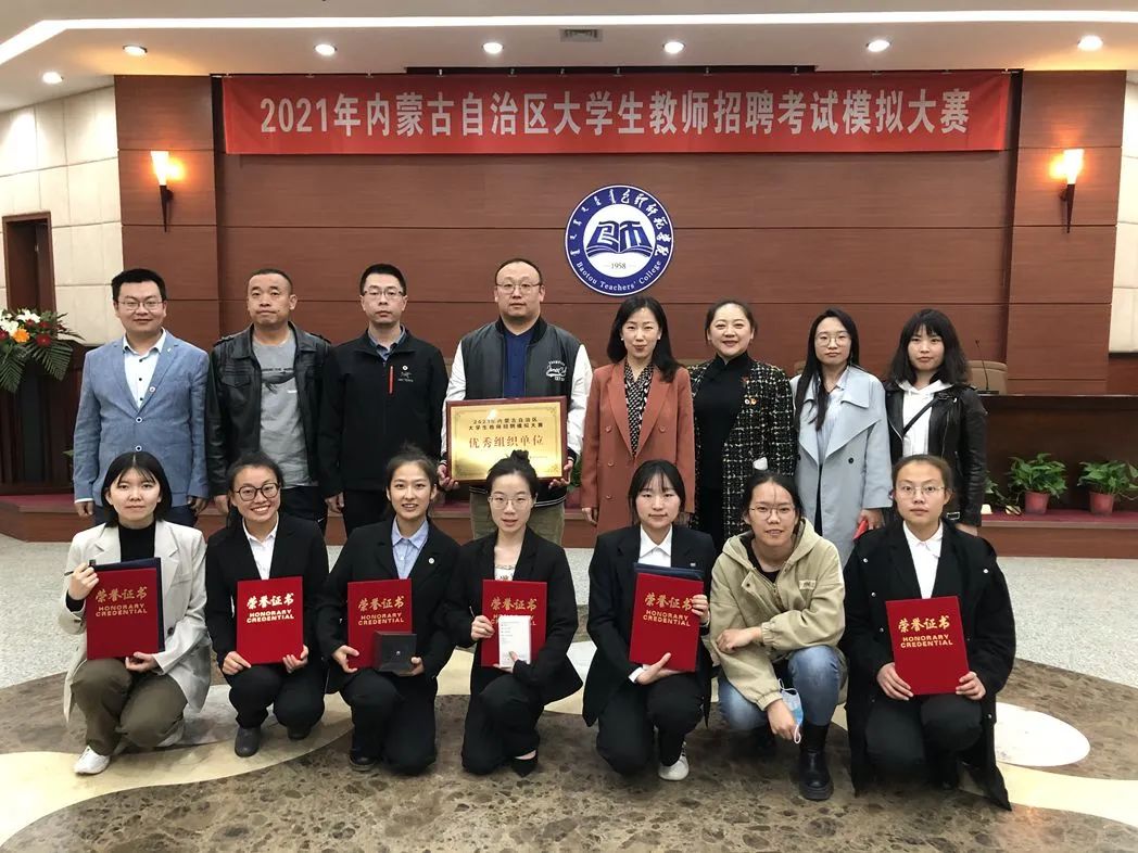 为深入贯彻落实教育部2021届高校毕业生就业工作调度视频会议精神,用心、用情做好我区高校大学生的就业服务工作,提升毕业生综合素质和就业能力,促进毕业生顺利毕业、尽早就业,由内蒙古自治区高校毕业生就业指导中心主办,包头师范学院承办的内蒙古自治区大学生教师招聘考试模拟大赛4月28日在包头师范学院落下帷幕。