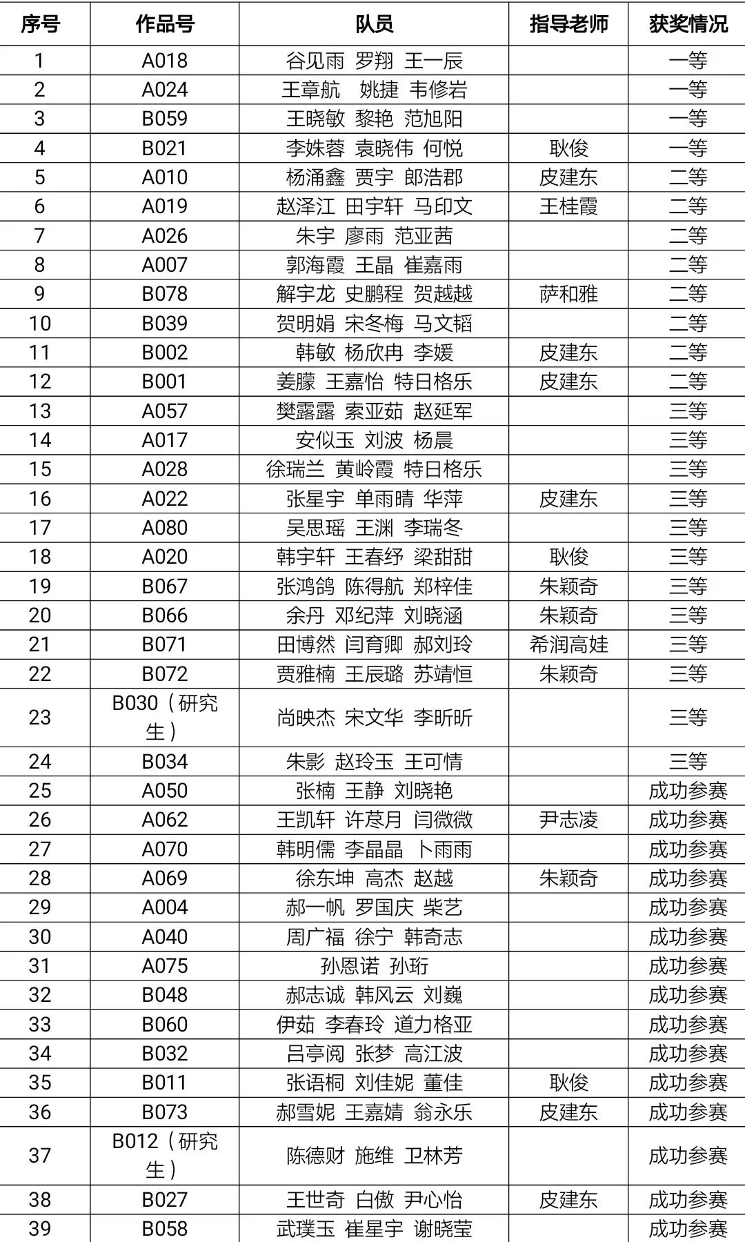 BEAT365英国官网第四届数学建模竞赛于2021年5月28日至5月31日举行,共有83支队伍报名参加,赛后共有47支队伍提交了论文。经过评委组的认真评阅,评出一等奖4组,二等奖8组,三等奖12组,成功参赛奖15组。具体名单如下: