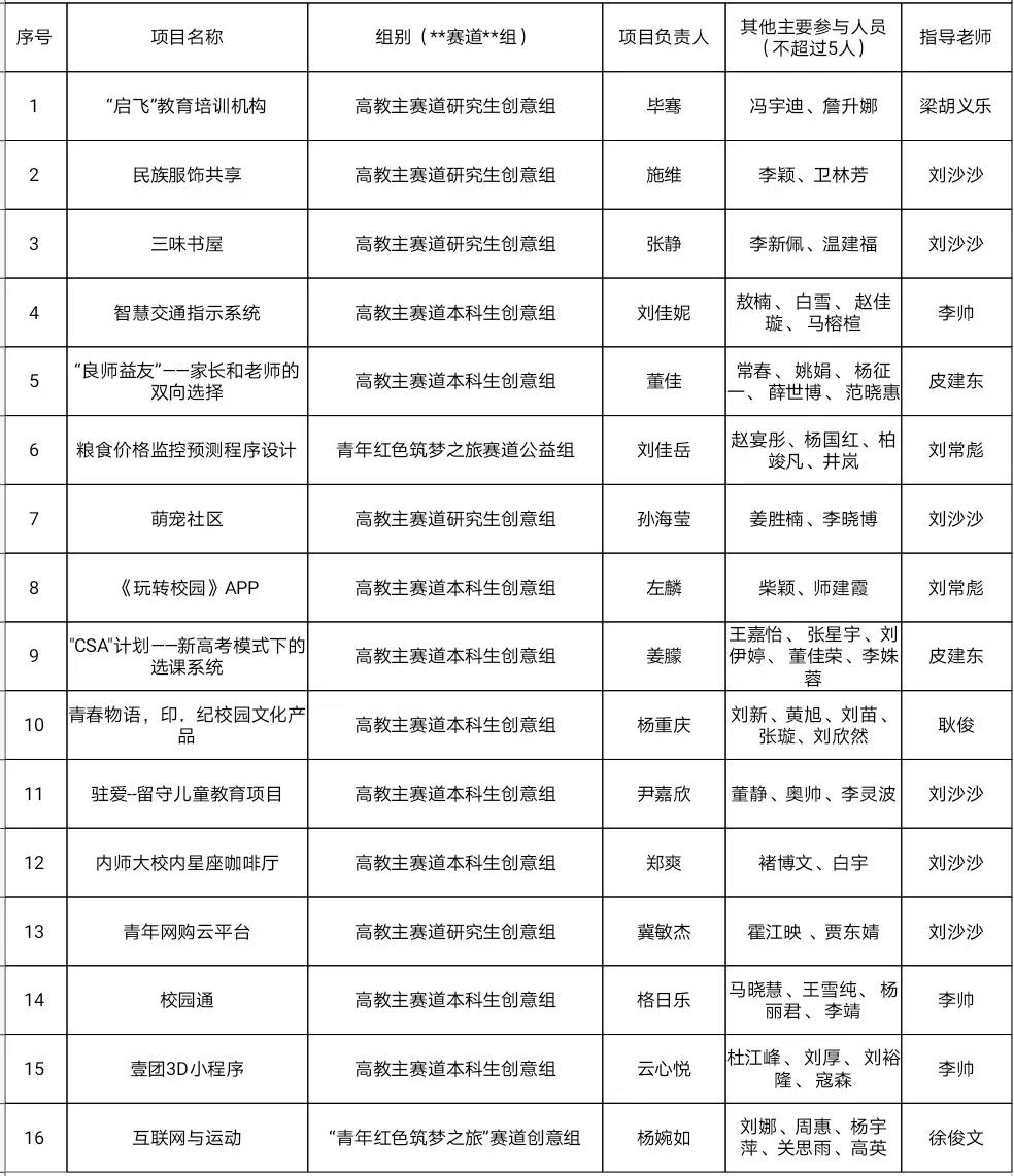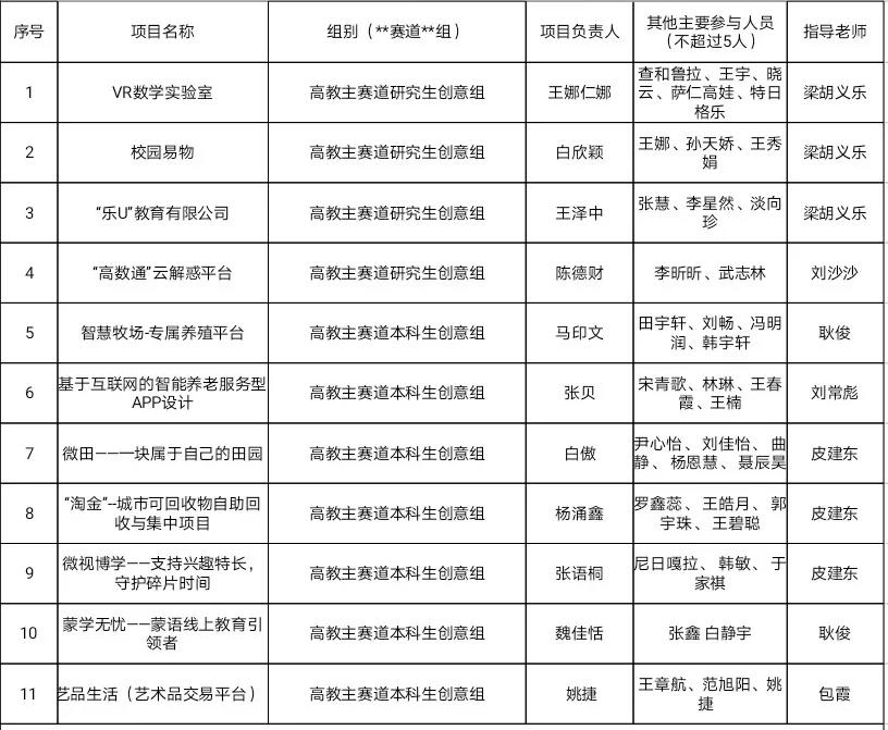 第七届中国国际"互联网+"大学生创新创业大赛BEAT365英国官网院赛初审名单: