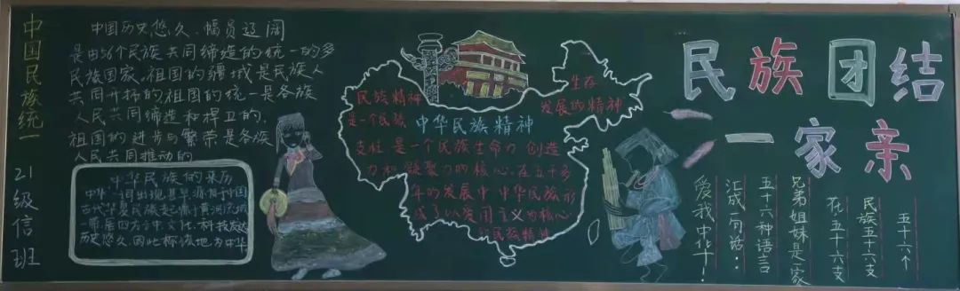 为了进一步铸牢中华民族共同体意识、助力中华民族的伟大复兴,BEAT365英国官网组织21级学生以“民族团结一家亲”、“铸牢中华民族共同体意识”为主题进行板报绘画,并对各参展作品进行评比。