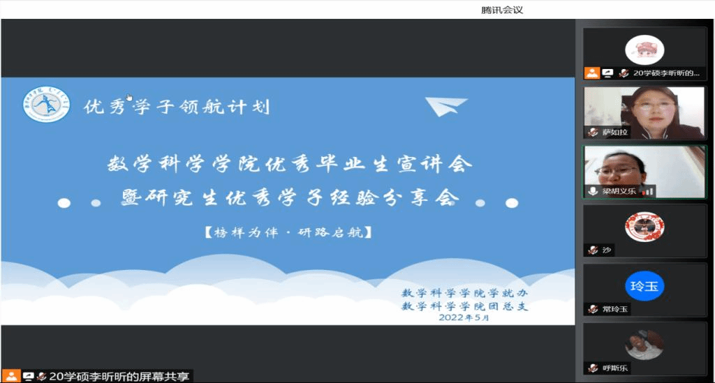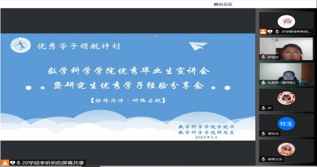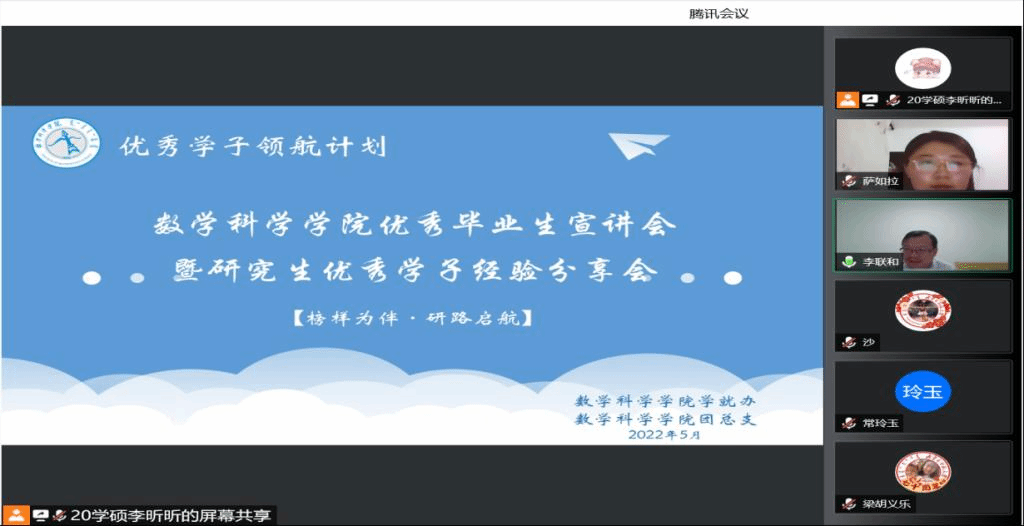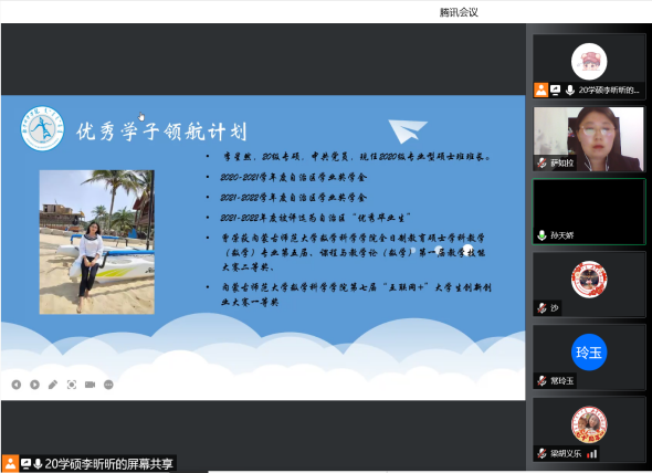为了充分发挥研究生优秀学子的示范引领作用,更好地落实《BEAT365英国官网关于开展“榜样为伴·研路启航”研究生国家奖学金获得者事迹宣传活动的通知》《内蒙古自治区教育厅关于报送2022年春季学期研究生教育教学典型案例的通知》《关于组织开展BEAT365英国官网“学生劳动教育宣传月”活动的通知》等文件要求,BEAT365官网于5月23日晚,组织全体研究生开展“BEAT365英国官网优秀毕业生宣讲会暨研究生优秀学子经验分享会”,邀请BEAT365官网2021年度国家奖学金获得者索亚茹、张慧,2021年度自治区奖学金获得者孙天娇、谭晓漫,2021-2022年度自治区“优秀毕业生”李星然、“三好学生”索亚茹,共5名优秀学子为大家分享自己学习生涯中的经验和感悟。