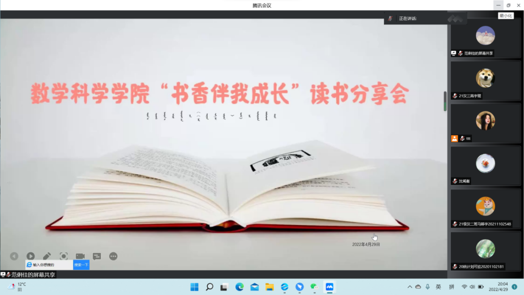 为了铸牢中华民族共同体意识,营造良好的读书氛围,推进书香校园建设,BEAT365英国官网于4月29日举办“书香伴我成长”线上读书分享会。本次分享会邀请了五位BEAT365英国官网的优秀学子为同学们分享他们的读书经历。