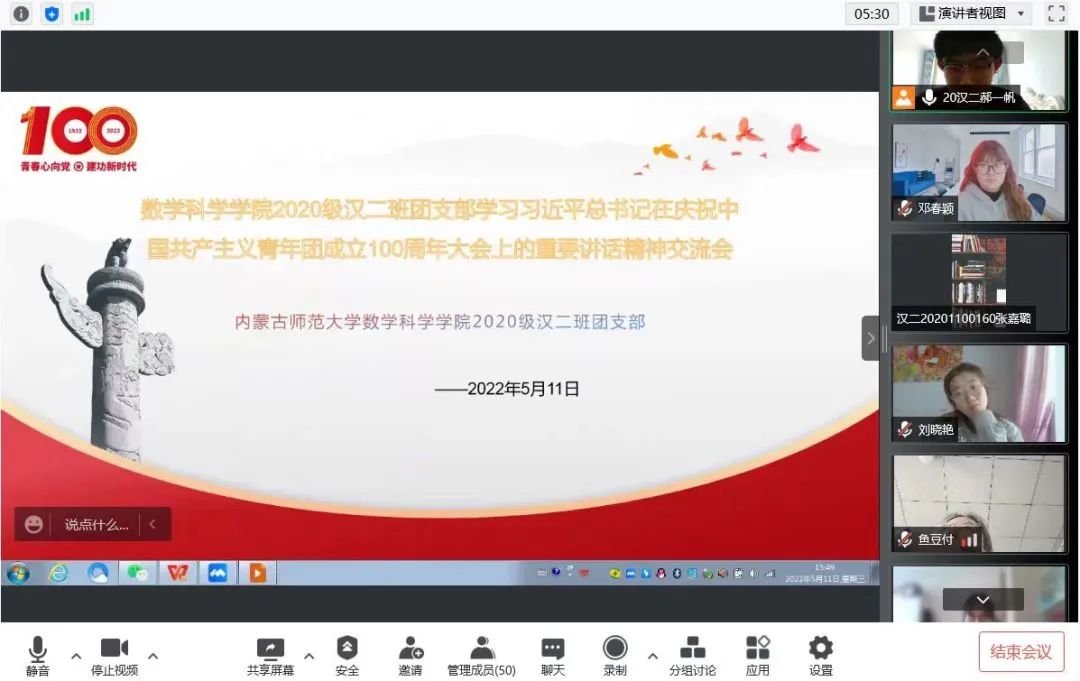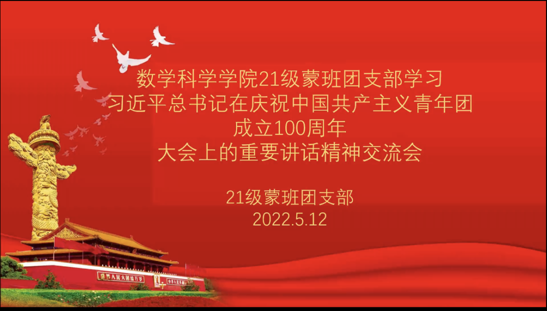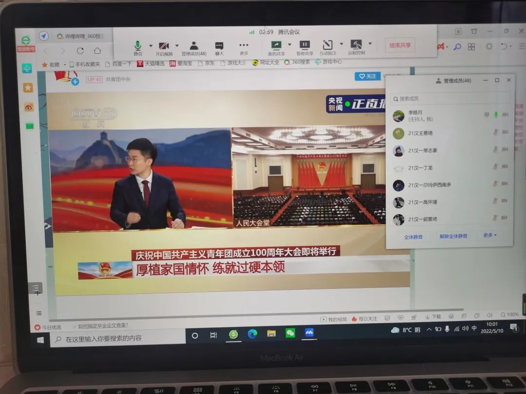5月10日,庆祝中国共产主义青年团成立 100 周年大会在京隆重举行,习近平总书记发表重要讲话。BEAT365英国官网全体团员青年收看了大会盛况,聆听了总书记的重要讲话。会后,各团支部积极行动,组织开展了学习习近平总书记在庆祝中国共产主义青年团成立100周年大会上的重要讲话精神交流会,分享学习心得,感悟党的关怀,以实际行动为团的百年华诞献礼。