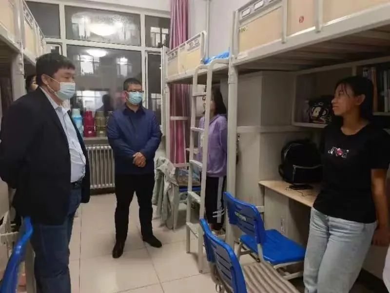 为充分了解疫情期间学生的学习、生活状况和思想动态,加强师生间的沟通与联系,院长扎其劳,党委副书记、副院长季建光,团总支书记皮建东,思想政治辅导员萨如拉于10月1日、2日深入学生宿舍,给同学们送去殷切关怀和深切慰问。