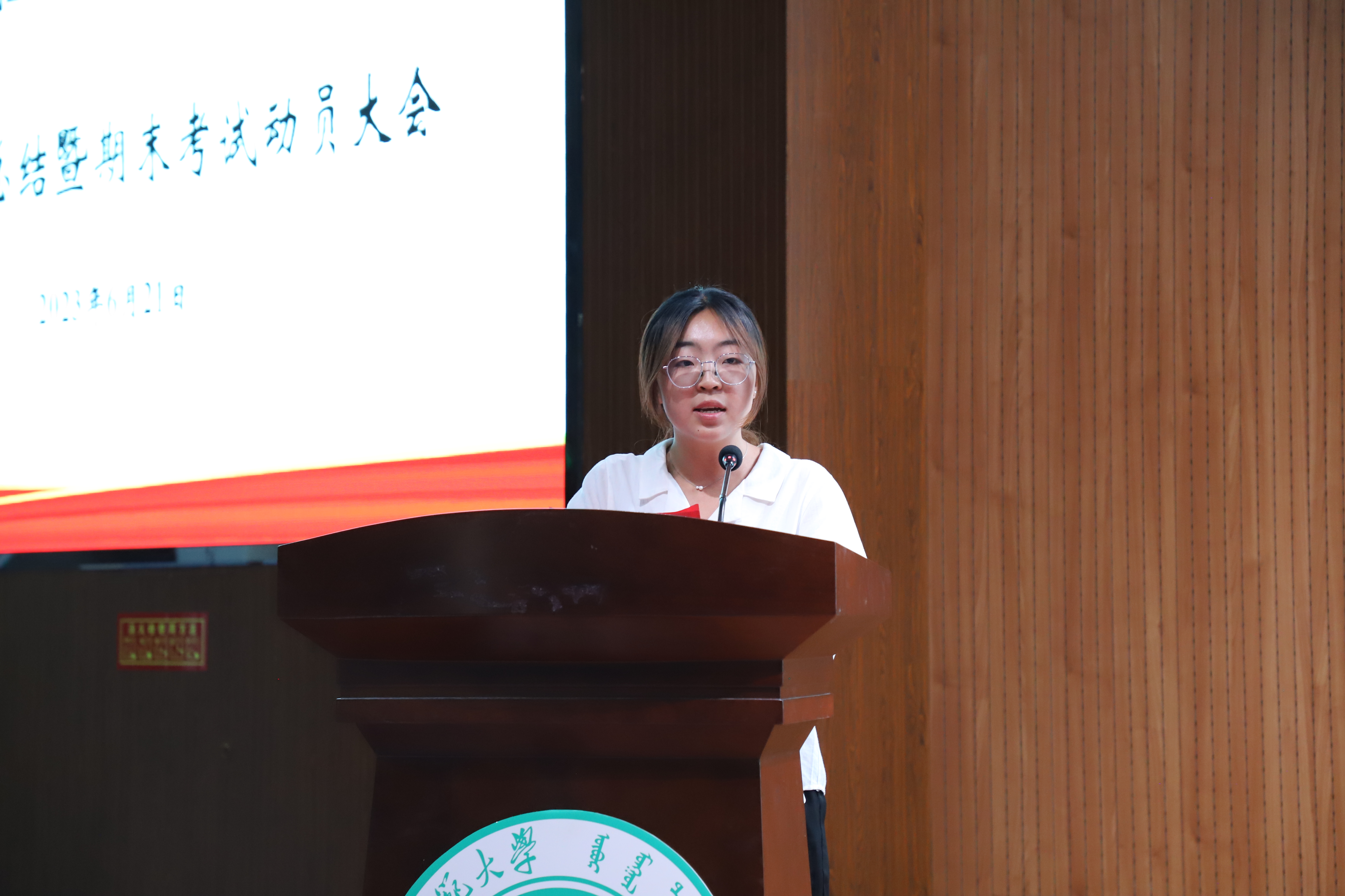 2023年6月21日晚七点,BEAT365英国官网于图书馆二楼报告厅举行了BEAT365官网2022—2023学年第二学期学生工作总结暨期末考试动员大会。出席本次会议的有学院院长扎其劳教授,学院党委副书记、副院长季建光老师,学院副院长包霞老师,团总支书记皮建东老师,学生工作辅导员萨如拉老师,学生工作辅导员阿茹罕老师,21级汉一班班主任李春兰老师,21级蒙班班主任乌日柴胡老师,21级汉四班班主任高兴华老师,21级信息班班主任赵学慧老师,22级一班班主任李璐老师,22级二班班主任郑佳璇老师,22级三班班主任苏日古嘎老师,22级四班班主任朱建波老师,22级五班班主任莘智老师,本次会议由学生工作与就业办公室副主任刘沙沙老师主持。