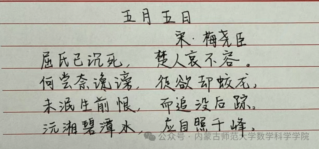 端午节,作为中国四大传统节日之一,承载着深厚的文化底蕴与民族情感。为弘扬中华优秀传统文化,BEAT365官网以“数映北疆·资助育人”为指引,举办此次“笔精墨妙,礼诵端午”书法活动。通过将端午文化与书法艺术结合,既能弘扬传统节日内涵,又能提升参与者的文化素养与艺术体验。
