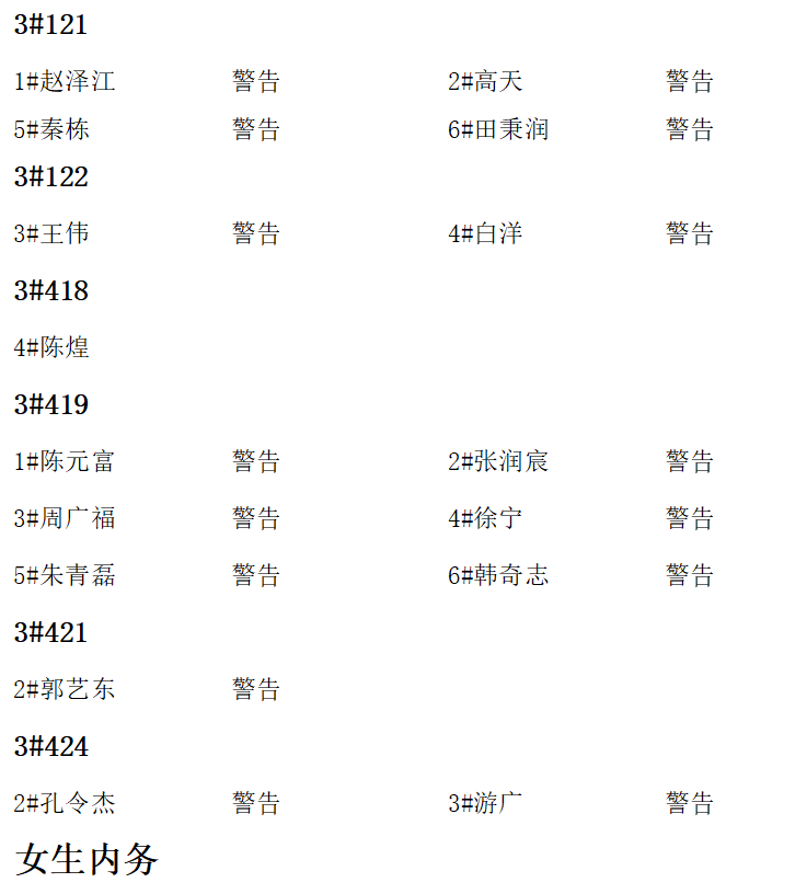 BEAT365英国官网20-21年度第二学期第二周通报批评