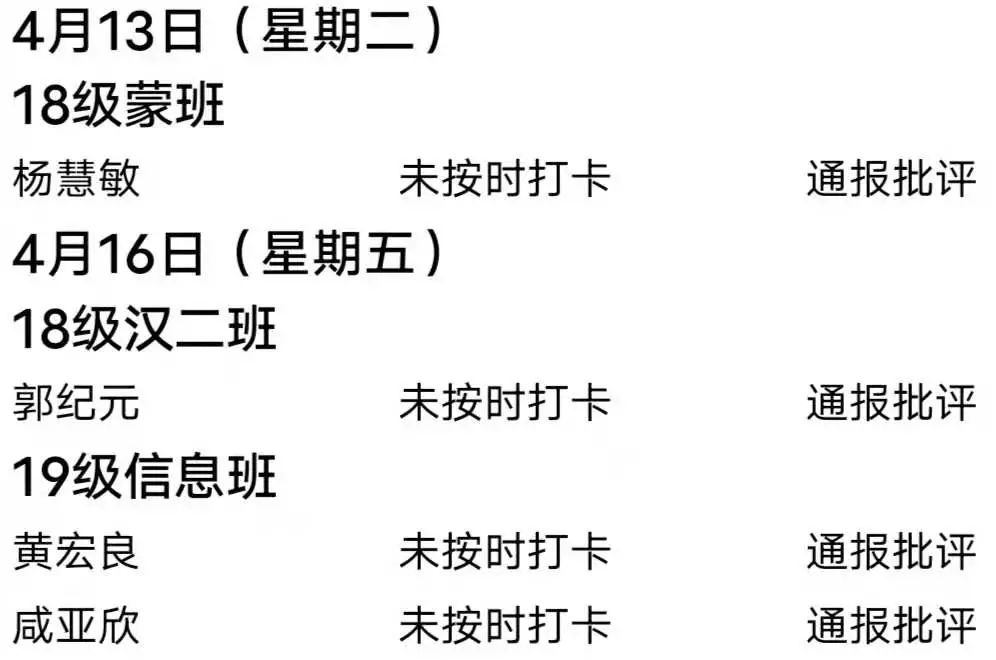 BEAT365英国官网20-21年度第二学期第七周通报批评