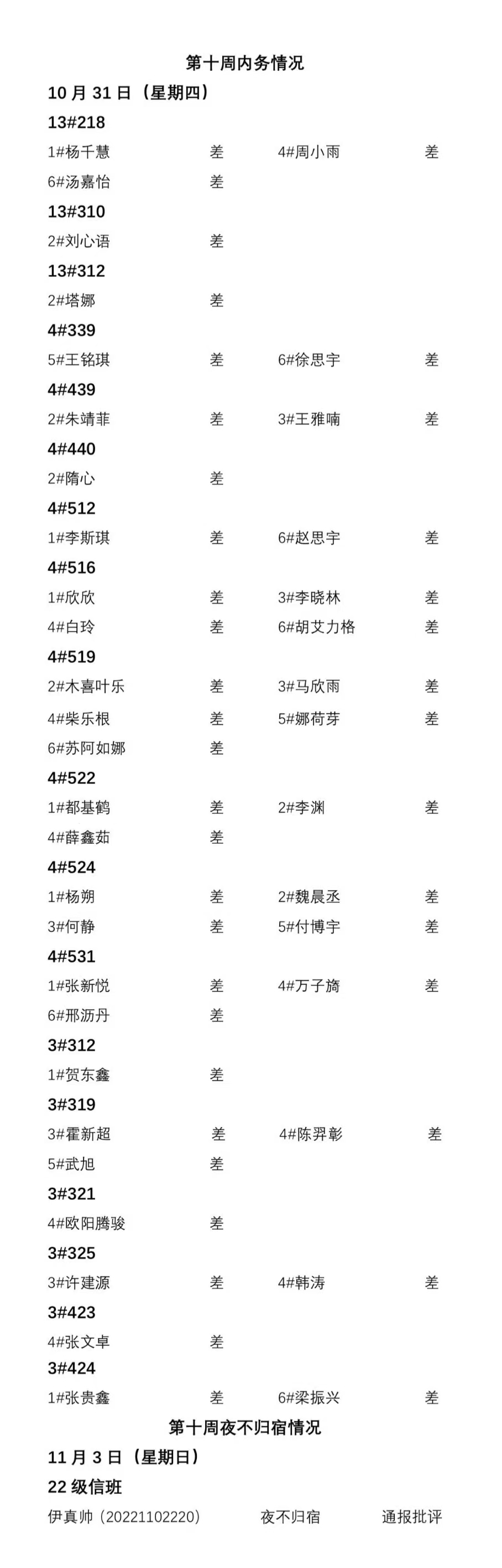 BEAT365英国官网2024——2025年度第一学期第十周通报情况