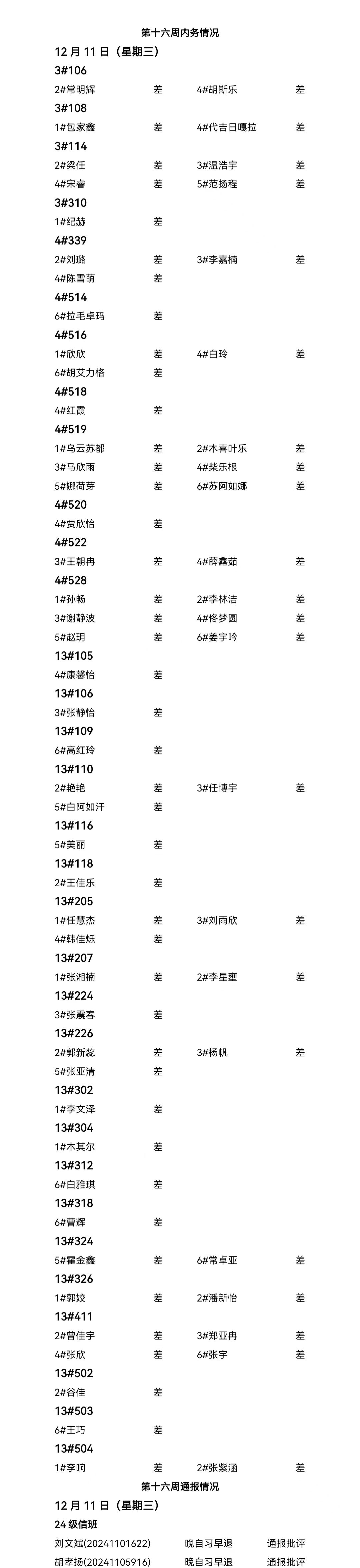 BEAT365英国官网2024——2025年度第一学期第十六周通报情况
