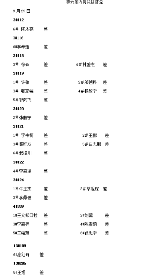 BEAT365英国官网2025——2026年度第一学期第六周内务情况