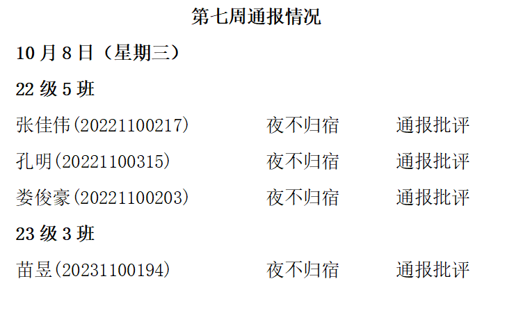 BEAT365英国官网2025——2026年度第一学期第七周通报情况