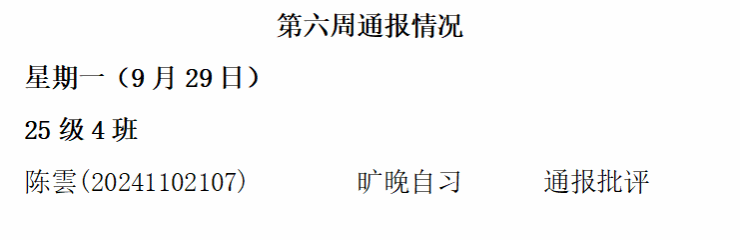 BEAT365英国官网2025——2026年度第一学期第六周通报情况