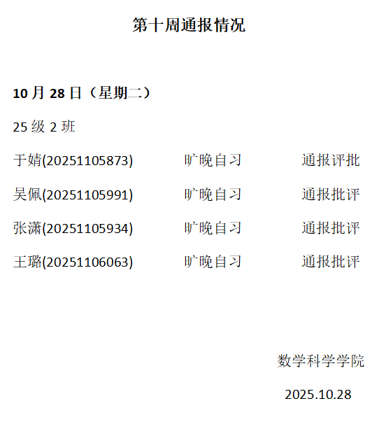 BEAT365英国官网2025——2026年度第一学期第十周通报情况