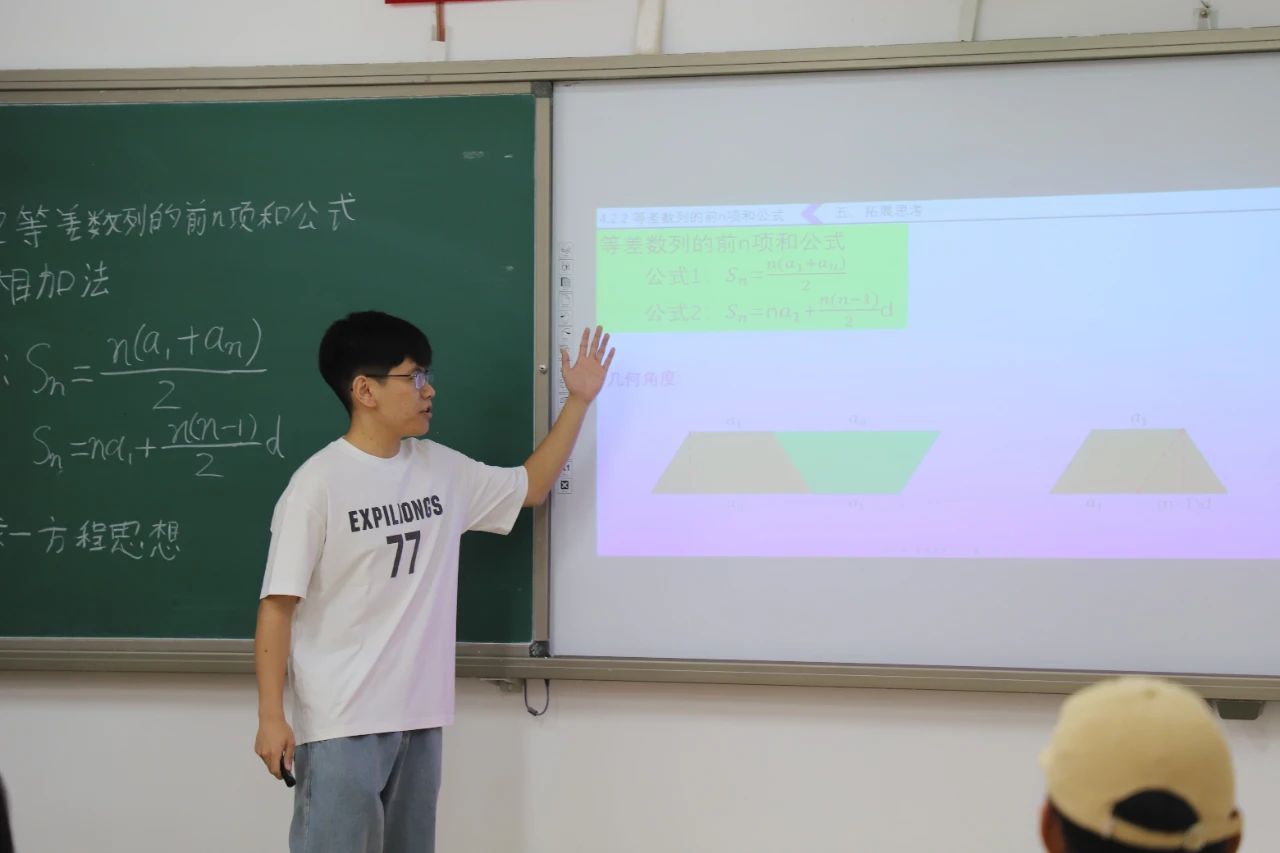 范鹏程老师对同学们的表现进行了点评总结。范老师表扬了同学们在教学技巧上的出色表现,同时,针对教学比赛中的时间管理、语言表达、教学布局等情况为同学们提出了切实建议。他鼓励同学们要保持终身学习和持续实践的能力,通过不懈努力和自我提升,为成为一名光荣的人民教师而奋斗。