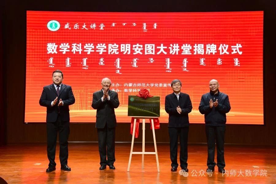 中国著名数学史专家、我校科学技术史研究院退休教师、博士生导师罗见今教授,全国政协委员、数学家、我校原党委书记、教育部重点实验室主任、博士生导师阿拉坦仓教授应邀出席并为明安图大讲堂揭牌。