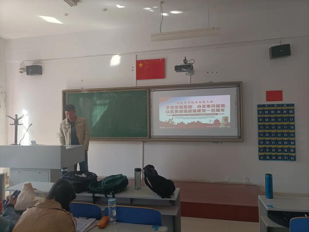 班会中3位预备党员同学分享了学党史的感悟,并鼓励同学们积极入党,在日常生活中学习党史,理解党的光辉历史、感悟党的初心使命。