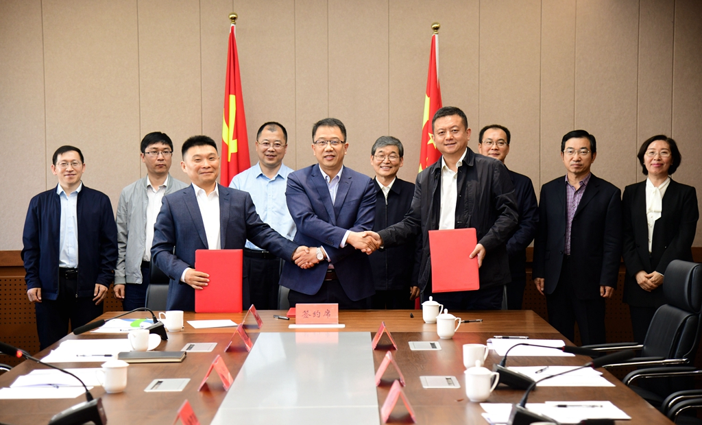 中国航天六院副院长贾永刚、内蒙古工业大学副校长宝音贺西与内蒙古自治区应用数学中心常务副主任、我校党委委员、副校长宫箭分别作为代表签署三方合作协议。