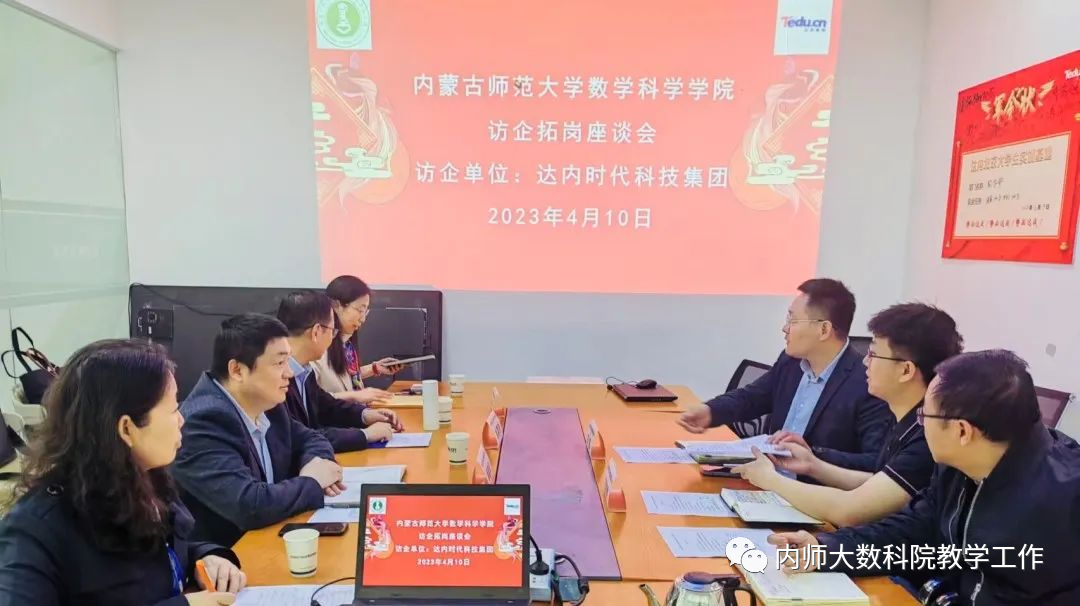 为进一步贯彻党中央、国务院关于高校毕业生就业工作的决策部署,落实教育部与内蒙古教育厅关于访企拓岗促就业专项行动的通知要求,进一了解社会和用人单位需求,开拓就业市场,促进BEAT365官网2023届毕业生更高质量更充分就业,4月10日,BEAT365英国官网院长扎其劳、副院长包霞、副书记季建光和信息与计算科学系主任王桂霞一行赴北京达内教育集团、京东总部和浪潮集团三家知名企业分别开展了访企拓岗促就业专项活动,在学生实习实践、对接企业用人需求、深化校企产学研合作、开拓就业市场等方面进行了座谈与交流。座谈会上,学院与达内教育集团签署了实习基地建设协议。