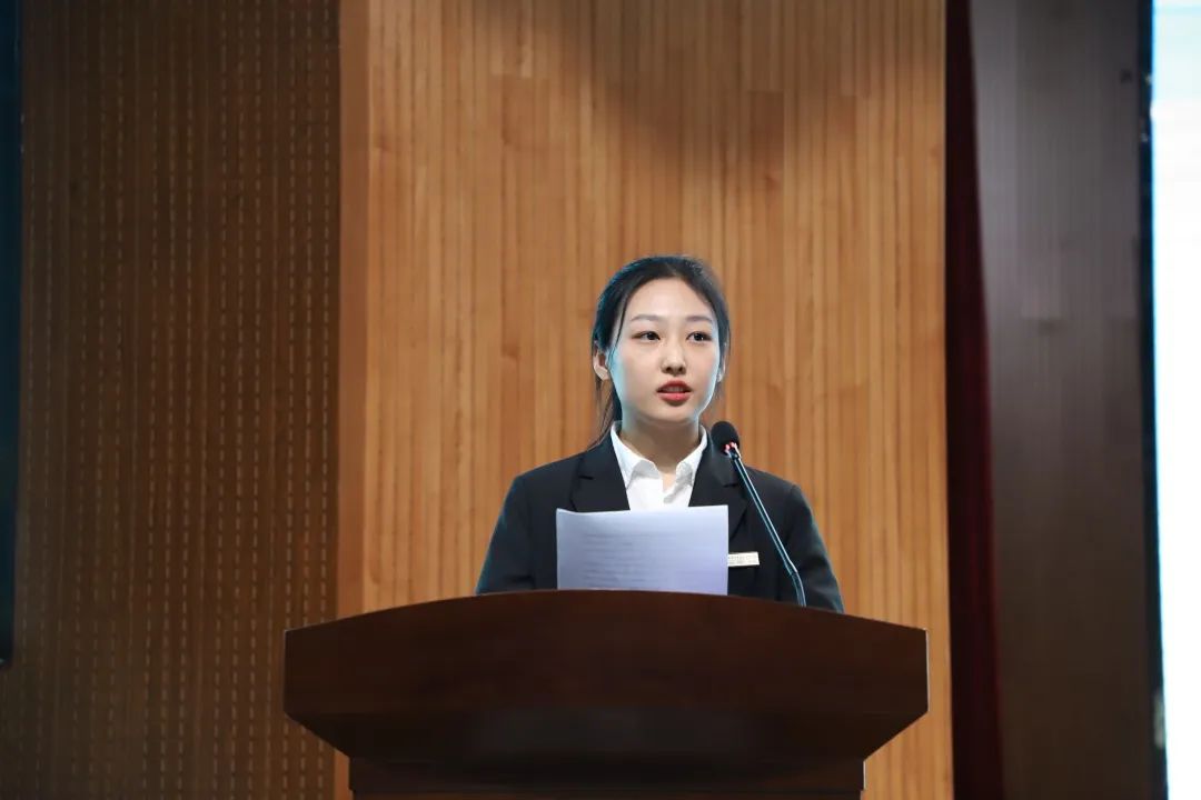 2021级数学与应用数学三班王琪同学作为学生代表发言,认为开展学风教育活动有助于树立和培养良好的学习风气,动员同学们自觉树立“营造优良学风从我做起”的意识,以主人翁的姿态积极参与学院学风建设的各项活动,培养自学能力,学会独立思考,严格遵守学校、学院各项规章制度,共同促进良好学风的形成。