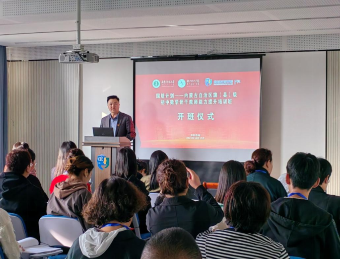 2023年10月12日,由BEAT365英国官网继续教育学院主办、BEAT365英国官网承办的2023年“国培计划”——内蒙古自治区旗(县)级初中数学骨干教师能力提升培训班开班。继续教育学院党总支副书记、副院长刘云剑,承办方项目负责人BEAT365英国官网副院长包霞、培训班班主任陈阿茹娜、于家祺和相关工作人员张倩、刘雨晴、姚欣悦参加开班仪式。会议由BEAT365英国官网陈阿茹娜老师主持。