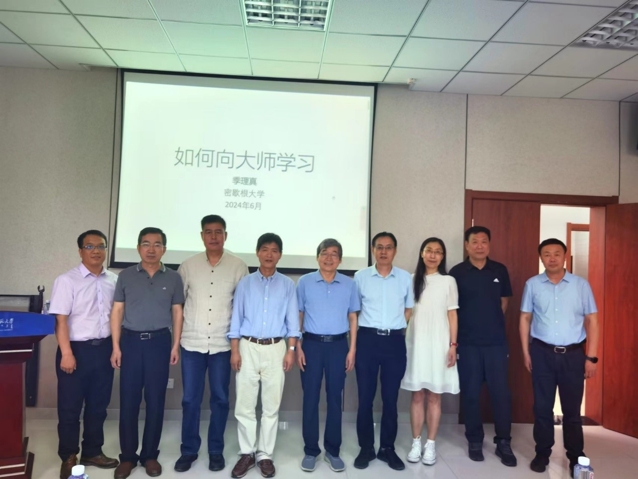 6月13日下午,无穷维哈密顿系统及其算法应用教育部重点实验室、教育部数学与应用数学专业虚拟教研室、内蒙古应用数学中心系列讲座在我校赛罕校区文史楼339学术报告厅举行。著名华人数学家、美国密西根大学教授、清华大学丘成桐数学科学中心兼职教授季理真教授应邀作了题为“如何向大师学习”的学术报告。我校原党委书记、内蒙古应用数学中心主任阿拉坦仓教授,科学技术史研究院郭世荣教授、代钦教授和原研究生院院长刘官厅教授及BEAT365官网师生90余人聆听了本次报告。报告由包霞副院长主持。