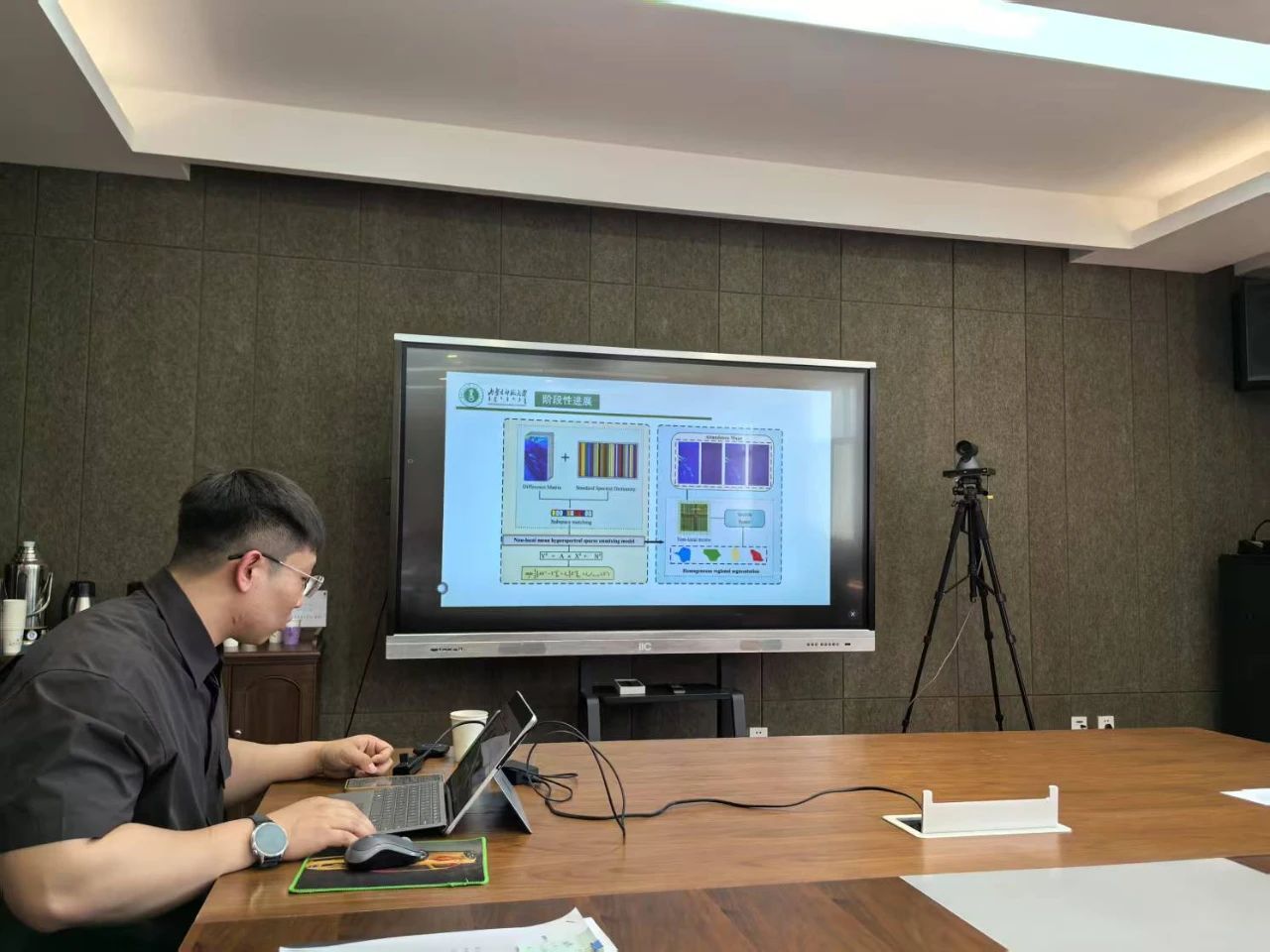 会中,刘官厅教授、郝帅博士、扎其劳教授、乔宏伟博士分别代表一流学科科研专项重点项目的四个子课题组,对研究进展进行了详细汇报,范鹏程副教授、乌日柴胡副教授、梁胡义乐副教授、秀峰副教授、刘勇波副教授、王苏丹副教授、周彦斌副教授、苏日古嘎博士、乔宏伟博士、朱建波博士、崔文颖博士、楚鑫博士、周艳娇博士、郑佳璇博士、张伟红博士、高兴华博士、李璐博士对一流学科科研专项一般项目的研究进展进行了详细汇报。阿拉坦仓教授、刘全生处长和咏梅处长对课题组的中期汇报给予了高度肯定并针对课题提出了建议与期望,为课题组研究打开了新思路。与会老师对开题组汇报也进行了热烈的讨论。