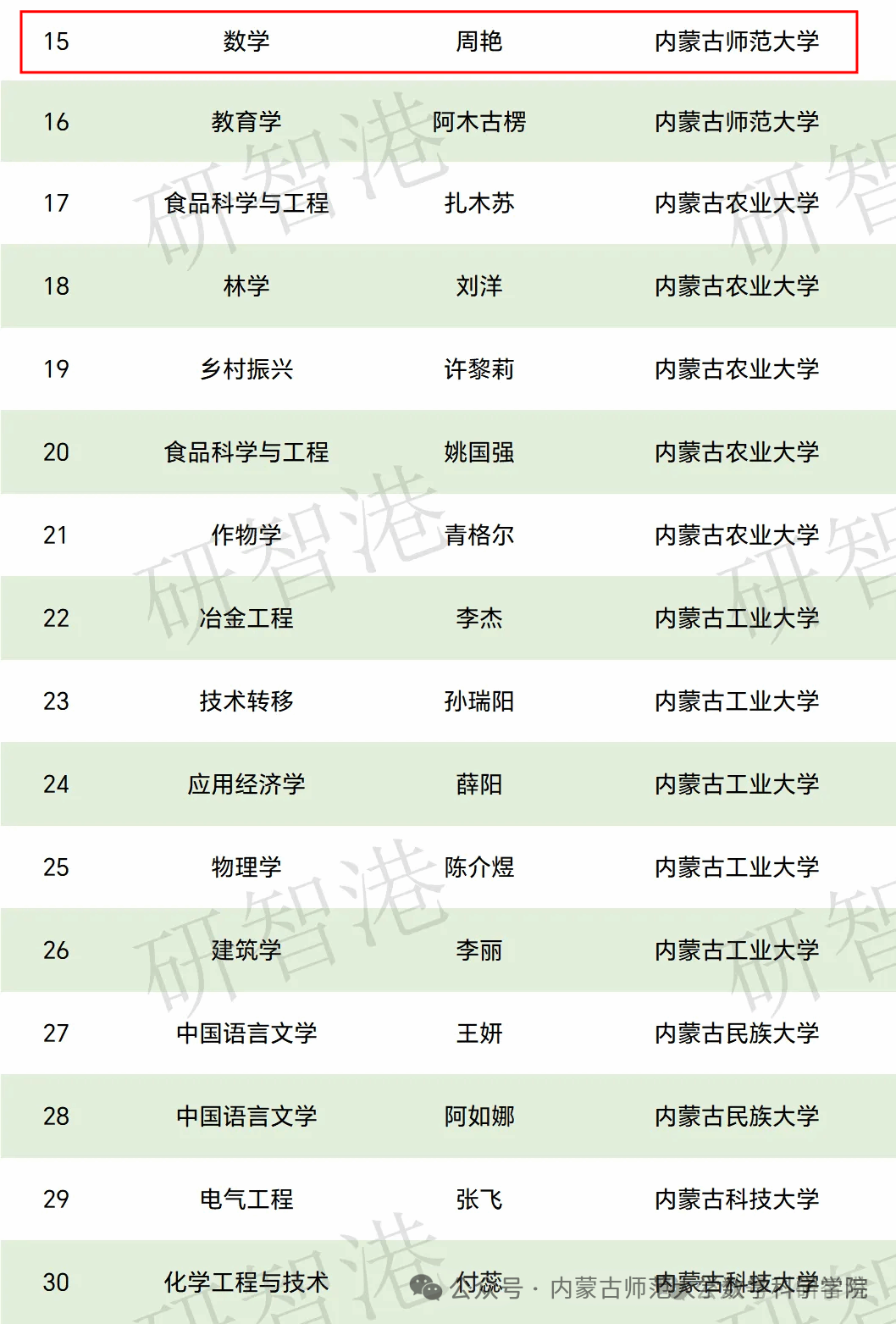 近日,2025年内蒙古自治区“高等学校青年科技人才发展项目”及首批“五大任务”关键技术研究专项评选结果正式揭晓,BEAT365官网教师周艳副教授成功入选内蒙古高等学校青年科技英才,为学院科研事业发展再添佳绩。
