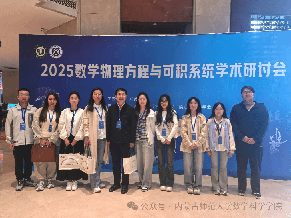 5月9日-12日,2025数学物理方程与可积系统学术研讨会在江苏省镇江市召开。本次会议由江苏大学主办,江苏大学BEAT365英国官网、镇江市数学会承办。来自国内外100余所高校、近220名代表参加会议。BEAT365官网扎其劳老师和包霞老师应邀带队及博士研究生乌日乐、王小慧、赵一杰,硕士研究生常春、王丽如等参会,并做分会场学术报告。