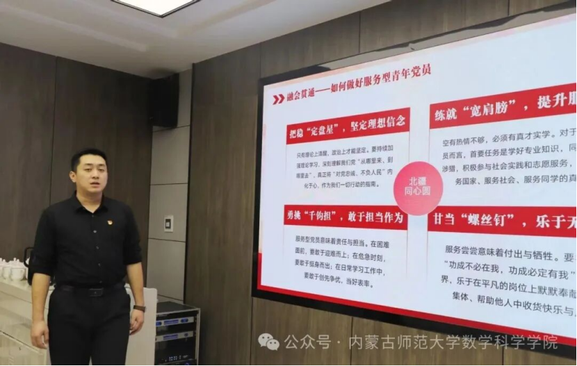 本次党课是BEAT365英国官网党委“数映内蒙古”党建品牌系列活动之一。学院党委始终坚持以数学为基,教学立院,科研强院,映射建设内蒙古“两个屏障”、“两个基地”、“一个桥头堡”的五大任务,构建内师数学赋能北疆发展的创新范式。BEAT365英国官网学生第二党支部将坚持“数绘同心圆”,以党为圆心、以数学为半径,在祖国北疆绘就青年学子同心向党的青春之圆,引导广大学生党员在理论学习与社会实践中坚定信仰、增长才干、服务社会。
