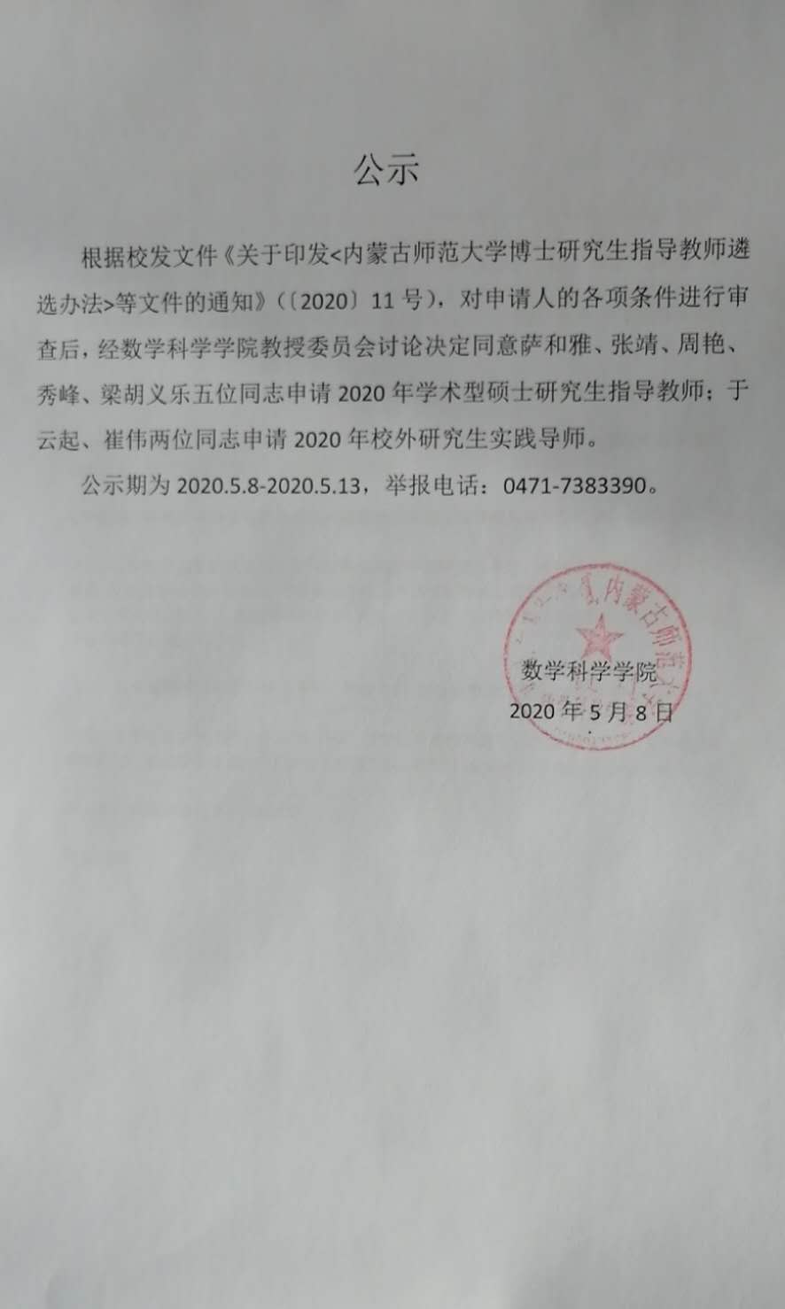 关于2020年度BEAT365英国官网申请研究生指导教师的评审公示
