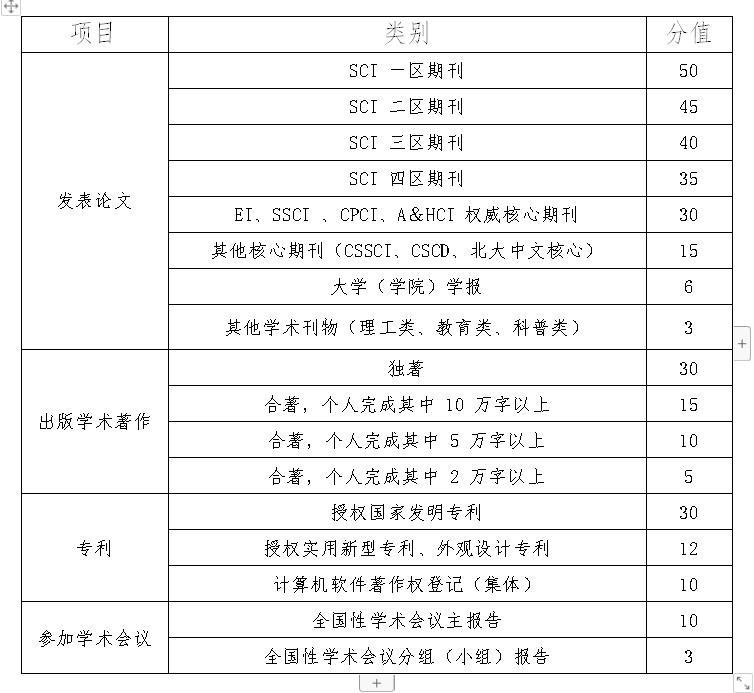 2.科研成果加分明细表(单位:分)