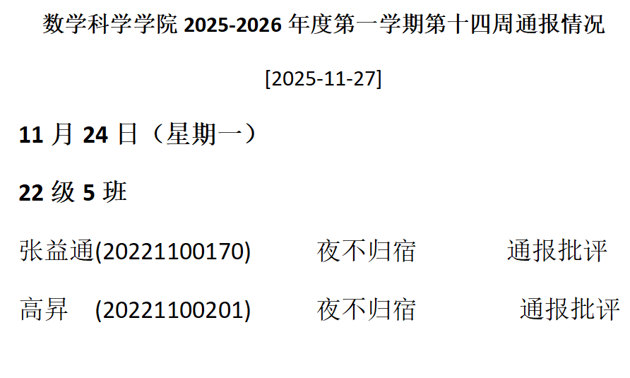 BEAT365英国官网2025-2026年度第一学期第十四周通报情况