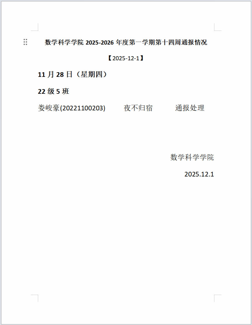 BEAT365英国官网2025-2026年度第一学期第十四周通报情况